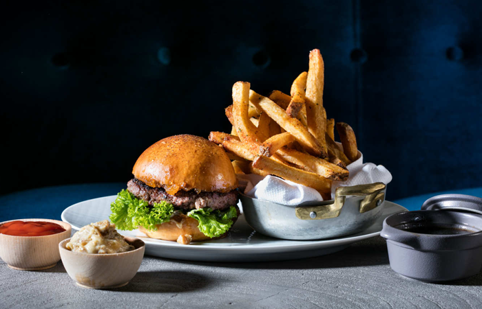 Sample New York’s newest over-the-top burger, which is made with confit duck leg. Duck: It’s everywhere. But what about a duck burger? There’s one on the menu at the brand-new Pomona (8 West 58th Street), a New York–nostalgic restaurant from the duo who worked at places like Strip House and Daniel. (They also ran the short-lived first iteration of Henry.) That pricey bird burger ($38) is one complicated patty. It’s made with ground duck breast, chopped liver, scraps of foie gras, and confit leg meat, which is all spiced up. After grilling, it’s rested into a duck jus with orange, and served on a brioche bun with duck-skin mayo, orange zest, mustard, and grapefruit jam. (The rest of the menu similarly retrofits many other steakhouses and meaty classics.)